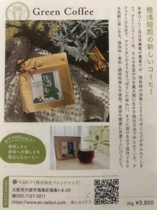 2023年2月20日 発売「リンネル4月号」において、『オーガニックセレクトショップ●<en>』にてお取り扱いしているグリーンコーヒーの記事が掲載されましたことをお知らせ致します。