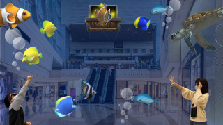 グラスをかけ、簡単な手の操作で海の生き物と触れ合えるシステムです。