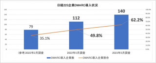 ・日経225のDMARC導入率は62.2%で、1年間で12.4%増加