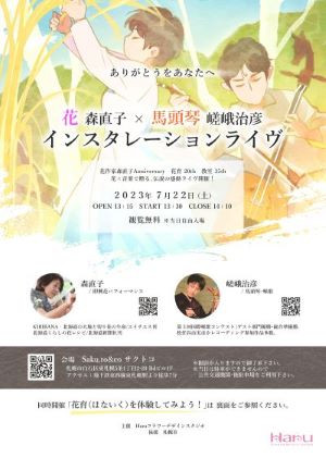 花作家・花育研究家であり花育の日本の先駆けである森直子(札幌市/「Haruフラワーデザインスタジオ」代表)は、花育20周年と教室35周年を記念して、音楽と花のインスタレーションライヴ「ありがとうをあなたへ」を、2023年7月22日 に、感謝とお礼を込めて、無料開催します。