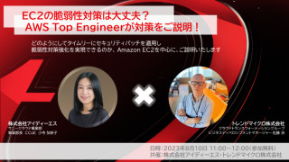 本ウェビナーでは、Amazon Elastic Compute Cloud (Amazon EC2)を中心に、どのようにしてタイムリーにセキュリティパッチを適用し、脆弱性対策強化を実現できるのか、AWS Top Engineerとトレンドマイクロのエキスパートがご説明いたします。