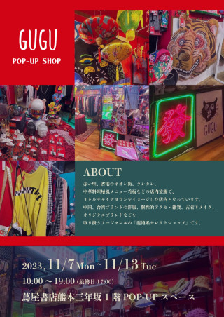 中国系ブランドを取り扱うセレクトショップGUGUのPOP-UPストアの出店は、台湾企業の誘致で盛り上がっている熊本県で盛り上がること間違いなしです!