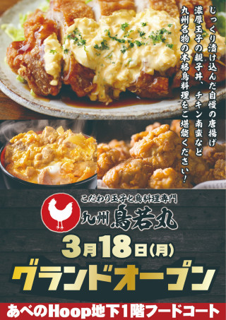 2024年3月18日 あべのHoop地下1階フープダイニングに【九州鳥若丸】がオープンいたします。