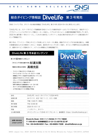 SNSI ジャパンでは、ダイバー向け総合情報誌「DIVELIFE」第3 号を2024 年4 月に発刊いたします。