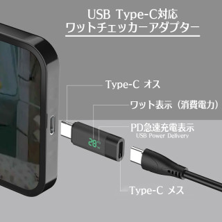 本製品はType-C接続して消費電力をデジタル表示するワットチェッカーアダプターです。