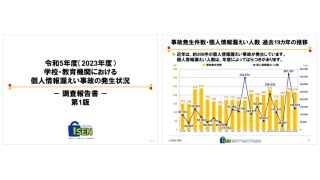 この調査はISENが毎年実施しており、学校、公的教育機関、関連組織で発生した、児童・生徒・保護者などの個人情報を含む情報の紛失・漏えい事故について、学校や自治体のホームページ、報道発表資料、