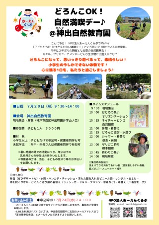 水遊び、どろんこ遊び、ザリガニ釣り!初めての生きものとの出会い、人生初の体験ができるかも!?