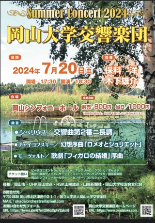 国立大学法人岡山大学(本部:岡山市北区、学長:那須保友)の岡山大学交響楽団では、2024年7月20日(土) に、岡山シンフォニーホールにおいて「Summer Concert 2024」を開催します。