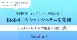 株式会社ドリームネッツ(本社:広島県福山市、代表取締役社長:井上 一成)は、全国展開する大手リユース販売企業のBtoBオークションシステムを開発。