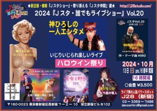 『Jスタショー』Vol.20は、神ひろし本人の「一人エンタメ」のコスプレが大いに関心を持たれているだけでなく、今回は、全作品、神ひろしの監修と言う形で、更にステータスアップしてご覧いただけます。