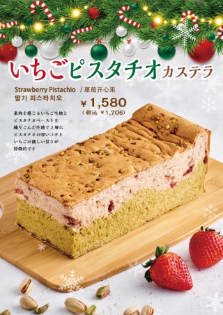 台湾カステラ専門店名東なんばウォーク店は、12月の新商品として期間限定 新商品「いちごピスタチオ カステラ」の提供を発表いたします。