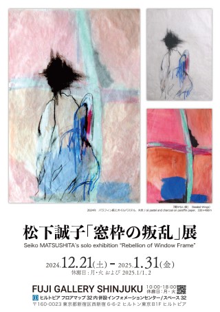 西新宿のヒルトン東京 地下1階に位置するフジギャラリー新宿では、本年2月の松下誠子「中庭の束縛」展に続き、2度目となる同アーティストの「窓枠の叛乱」展を2024年12月21日(土) より2025年1月31日(金) まで開催いたします。「中庭の束縛」展は長い制作活動の中で描いた未発表のドローイング作品とビデオ作品、今回の「窓枠の叛乱」展ではインスタレーションと2枚のパラフィン紙を用いたドローイング作品を展示いたします。2回の展覧会は、フェミニズムアーティストとしてカテゴライズされることの多いアーティストの過去から未来への軌跡を追うものです。