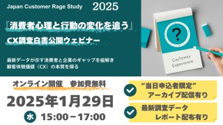株式会社ラーニングイットは2025年1月29日 に無料ウェビナーにて【消費者心理と行動の変化を追う】CXに関する大規模消費者調査(Japan Customer Rage Study2025)を公開致します。