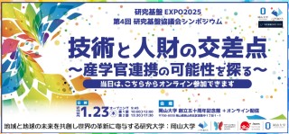 今回、岡山大学総合技術部では、この「研究基盤EXPO2025」のメインシンポジムウとして、第4回研究基盤協議会シンポジウム「技術と人財の交差点~産官学連携の可能性を探る~」を1月23日(木) に本学津島キャンパスの岡山大学創立五十周年記念館で開催します。