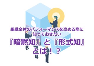 組織全体のパフォーマンスを高める際には、個人の感覚的・言語化されていない『暗黙知』をいかに『形式知』へ変換し組織内に共有できるかがポイントになります。暗黙知と形式知のそれぞれの意味、変換するフレームワーク、形式知を徹底し過ぎることで生じる弊害などについて解説しています。