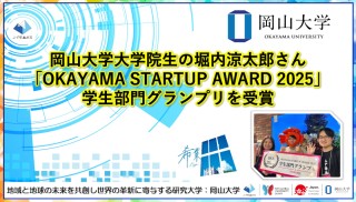 国立大学法人岡山大学(本部:岡山市北区、学長:那須保友)の大学院ヘルスシステム統合科学研究科博士前期課程の堀内涼太郎さんが、2025年3月29日 に岡山市のももたろう・スタートアップカフェ(ももスタ)で開催された「OKAYAMA STARTUP AWARD 2025 第4回ももスタビジネスプランコンテスト」で学生部門グランプリに選ばれました。
