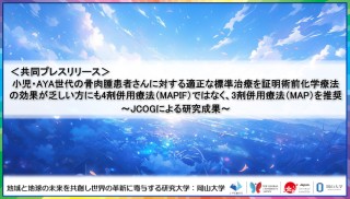 小児・AYA世代の骨肉腫患者さんに対する適正な標準治療を証明術前化学療法の効果が乏しい方にも4剤併用療法(MAPIF)ではなく、3剤併用療法(MAP)を推奨~JCOGによる研究成果~