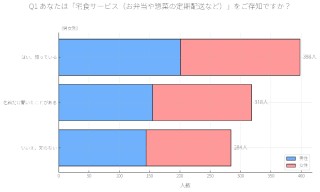 男女別の回答傾向を見ても、「知っている」と回答した人数は男女でほぼ同数となっており、宅食サービスが性別にかかわらず幅広く浸透している様子がうかがえます。