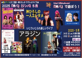 さて、5月「神パ」は、神ひろしと大久保千代太夫の新作「アラジン」他、情熱溢れる夢の競演となるでしょう。