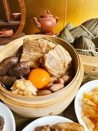 ちまきは醤油ベースの味付けでじっくり蒸したもち米の中に、豚バラ肉と塩漬け卵の黄身を贅沢に包み込んだ逸品。職人が一つ一つ丁寧に手掛けた、この時期ならではの特製ちまきを、ぜひご賞味ください。