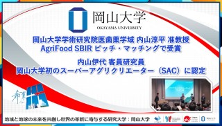 国立大学法人岡山大学(本部:岡山市北区、学長:那須保友)学術研究院医歯薬学域(医)の内山淳平准教授を代表とする事業チームが、2025年3月17日 に東京で開催された「AgriFood SBIR ピッチ・マッチング2025」において「グッドブレークスルーテックプレゼン賞」を受賞しました。