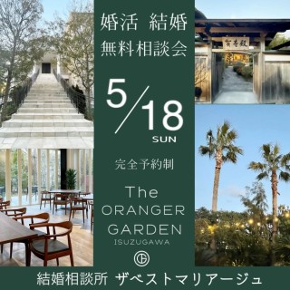 三重県の伊勢市・松阪市・津市の3店舗を拠点に、結婚相談所を運営するザベストマリアージュ(所在地:三重県伊勢市)は、独身男性・女性を対象とした結婚・婚活 無料相談会を5月18日(日) に三重県伊勢市の結婚式場ザ・オランジェガーデン五十鈴川にて行います。