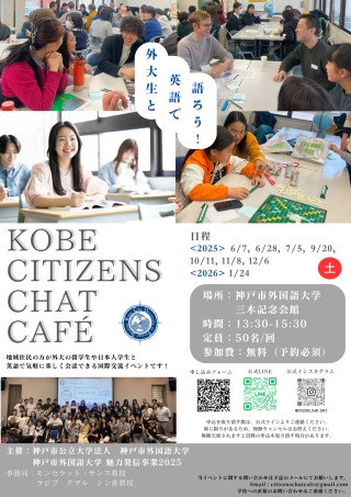 この度、参加者の方と神戸市外国語大学生(留学生を含む)との多文化交流を目的とした「CITIZENS CHAT CAFE」を開催します。