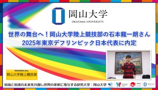 国立大学法人岡山大学(本部:岡山市北区、学長:那須保友)の陸上競技部の石本龍一朗さん(教育学部3年)が、2025年11月 に東京で開催される「第25回夏季デフリンピック競技大会」において、男子400mハードルの日本代表に内定しました。