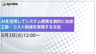 株式会社Sprobeは、AIを活用したシステム開発の効率化に関する無料オンラインセミナー「AIを活用してシステム開発を劇的に加速!工数・コスト削減を実現する方法」を、ご好評につき2025年6月3日(火) 12:00より再開催いたします。