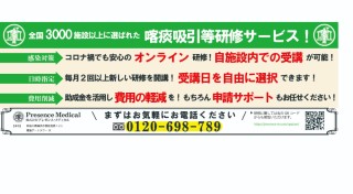 株式会社プレゼンス・メディカルは介護職員向けに喀痰吸引等研修《第1・2号研修》をコロナ禍でも安心して受講できるオンライン(ZOOM)で実施致します。