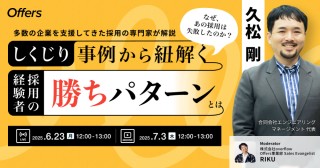 本セミナーでは、数多くの企業の採用支援を行ってきた“採用のプロ”久松氏をお招きし、経験者採用で陥りやすい「しくじり事例」をご紹介します。さらに、失敗を未然に防ぐための“勝ちパターン”について、具体的かつ実践的に解説します。
