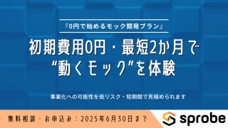 株式会社Sprobeは、新規事業立ち上げや社内DXを検討中の企業様を対象に、**要件整理からモック作成までを2か月間無料で支援する『0円で始めるモック開発プラン』**の提供を開始いたしました。