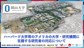 国立大学法人岡山大学(本部:岡山市北区、学長:那須保友)は、アメリカ・ハーバード大学(Harvard University)をはじめとする同国の大学・研究機関に対するアメリカ政府の対応について、留学生(大学生・大学院生)への対応とともに、在籍中の研究者についても、本学は対応の準備を進めています。