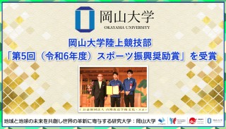 国立大学法人岡山大学(本部:岡山市北区、学長:那須保友)の陸上競技部がスポーツ振興奨励賞を受賞し、2025年5月23日 にRSKイノベイティブ・メディアセンターの能楽堂ホールtenjin9で執り行われた「第62回(令和6年度)学術研究助成授賞式および第5回(令和6年度)スポーツ振興助成授賞式」に出席しました。