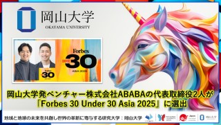 国立大学法人岡山大学(本部:岡山市北区、学長:那須保友)の岡山大学発ベンチャー株式会社ABABAの代表取締役である久保駿貴さん(本学大学院社会文化科学研究科博士前期課程在籍)と中井達也さんが、米経済誌『Forbes』が発表する「Forbes 30 Under 30 Asia 2025」に選出されました。