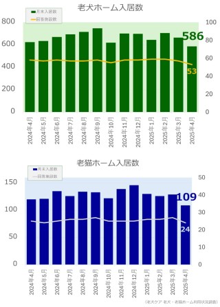 ◎老犬ホーム入居数は586頭、老猫ホーム入居数は109頭