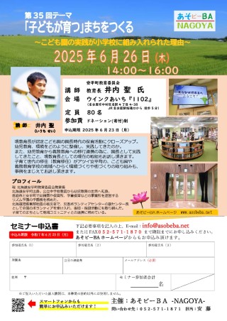 今回、その実践をリードしてきた安平町教育長・井内聖(いうち・せい)さんをお迎えし、「子どもが“育つ”まちとはどんなまちか?」をテーマにした講演会を名古屋で開催します。