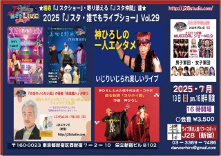 さて、「J スタ・誰でもライブショー」Vol.29 は、神ひろしと大久保千代太夫の新調「日本春歌考・ヨサホイ節」はじめ、幅広いジャンルのエントリーで、一粒で二度おいしい、宝石箱のようなライブになるでしょう。