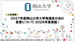 国立大学法人岡山大学(本部:岡山市北区、学長:那須保友)は、「2027年度岡山大学入学者選抜方法の変更について(2026年度実施)」について、以下の通り公開しましたので、お知らせします。