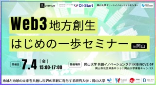 国立大学法人岡山大学(本部:岡山市北区、学長:那須保友)とWeb3のプロフェッショナルがタッグを組み、Web3技術で岡山の地域課題解決と新たな価値創造を探る無料セミナーを開催します。