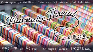 現代美術作家シムラヒデミの20年間のアーティスト活動を振り返る個展を7月29日~8月5日に渋谷ヒカリエ8F 8/CUBEにて開催。丹念に巻かれた刺繍糸が生み出す光と色の調和が楽しめる平面作品をはじめ、実際に触れて楽しめる巨大なぬいぐるみ型の立体作品などを展示、ヴァリエーションに富んだ空間を作り上げる。