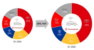 カウンターポイント・リサーチの最新の「グローバル・コネクテッドカー・トラッカー」によると、2025年第1四半期における日本のコネクテッドカー販売台数は、国内自動車メーカーによるコネクティビティ対応車両の展開加速により、前年同期比34%増と大きく成長しました。この動きは、車載デジタル機能への消費者の関心の高まりと、自動車メーカーの継続的な投資によって支えられています。