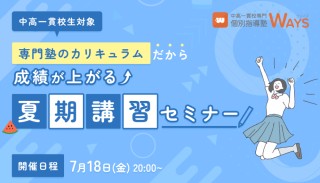 株式会社メイツ(本社:東京都新宿区 代表取締役:遠藤尚範)が運営する『中高一貫校専門 個別指導塾WAYS(以下、WAYS)』では、2025年7月18日(金) 20時より、中高一貫校生およびその保護者を対象とした夏休みの過ごし方について解説する「夏期講習セミナー」をオンライン&無料で開催いたします。