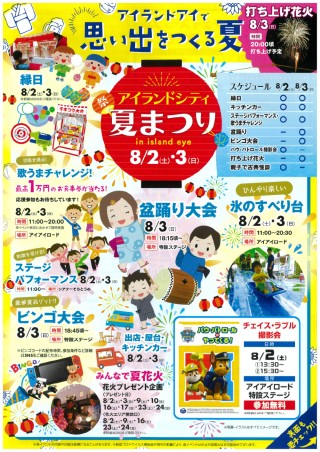 福岡市東区香椎照葉の「アイランドアイ」では、2025年8月2日(土) ・3日(日)の2日間にわたり、夏の風物詩「アイランド夏祭り」を開催いたします。