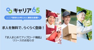 シニア人材に特化した求人サイト「キャリア65」(運営:合同会社福祉人事/東京都港区)は、2025年7月30日 より新たに「求人まとめてアップロード機能」をリリースいたしました。これにより、複数の求人情報をまとめて効率的に登録できる環境を整え、掲載企業の業務負担を軽減するとともに、サイト上でのシニア人材と求人掲載企業のマッチング促進を目指します。
