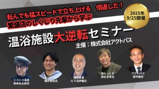 株式会社アクトパス(本社:東京都中央区銀座3-11-5 代表取締役:望月義尚)は、2025年9月25日(木) 、東京・表参道にて温浴業界向け特別企画「繁盛店のしくじり先輩から学ぶ 温浴施設大逆転セミナー」を開催します。