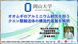 国立大学法人岡山大学(本部:岡山市北区、学長:那須保友)学術研究院先鋭研究領域(異分野基礎科学研究所)の菅倫寛教授の研究グループは、同領域(資源植物科学研究所)の馬建鋒教授、三谷奈見季准教授、同領域(異分野基礎科学研究所)の篠田渉教授、浦野諒助教(特任)らと共同で、オオムギ由来のクエン酸輸送体AACT1タンパク質の立体構造を明らかにしました。この立体構造の解析から、AACT1がクエン酸を放出する仕組みの構造的基盤が解明されました。
