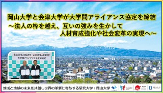 国立大学法人岡山大学(本部:岡山市北区、学長:那須保友)は、2025年7月24日 に公立大学法人会津大学(本部:福島県会津若松市、理事長兼学長:束原恒夫)と、国立大学法人と公立大学法人という法人形態の違いを越えて、両大学の強みを生かした連携を進めるため、「大学間アライアンス(同盟)協定」を、会津大学で締結しました。