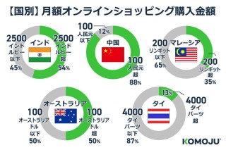 本記事では、インド、中国、マレーシア、オーストラリア、タイ、5か国のオンラインショッピング購入金額を紹介。各国の月額支出額や消費行動、人気ECプラットフォーム、決済手段、SNS活用状況などには違いが見られます。