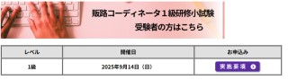 試験の他に、当協会の認定する研修と研修後の小試験により、資格認定を行う資格認定研修があり、研修修了後に実施される小試験に合格すると一斉試験は免除されます。その後、小試験合格通知日より1ヶ月以内に論文を提出することで、販路コーディネータ1級資格を取得できます(資格登録が必要)。受講には販路コーディネータ2級の資格が必要です。次回開催日は2025年9月14日(日) 、受付締切日は2025年9月4日(木) 。